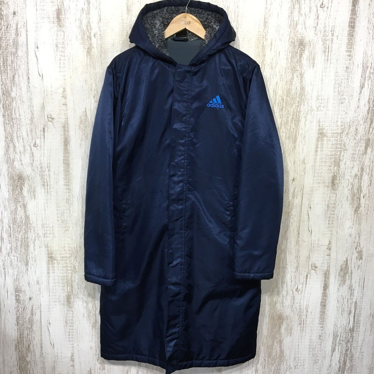 - 413☆【裏フリース ベンチコート】adidas アディダス 紺