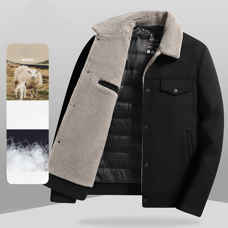 - ウールジャケット ダウンジャケット 裏ボア裏フリース ショートコート メンズ*新品 秋冬服 アウター【MS2336】黒色 L