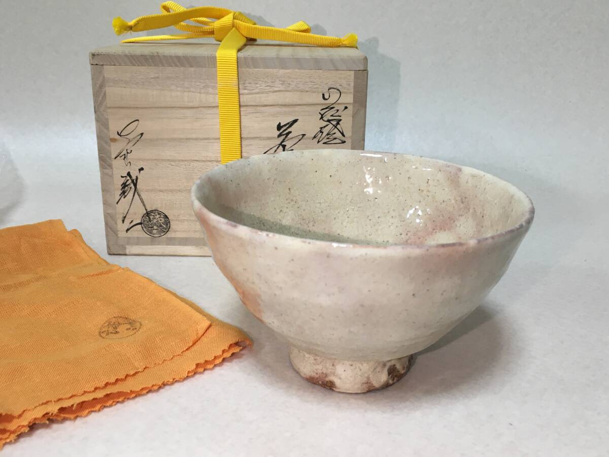 - E933 未使用 大野誠二 萩焼 茶碗 共箱 共布 茶道具