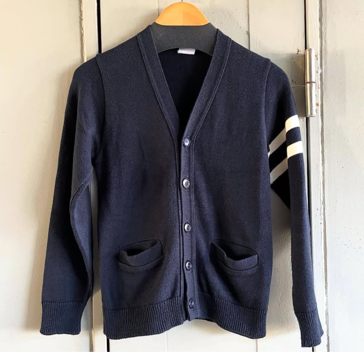 - EASY KNIT イージーニット カーディガン ネイビー ニット コットン アクリル Vネック カナダ製 S