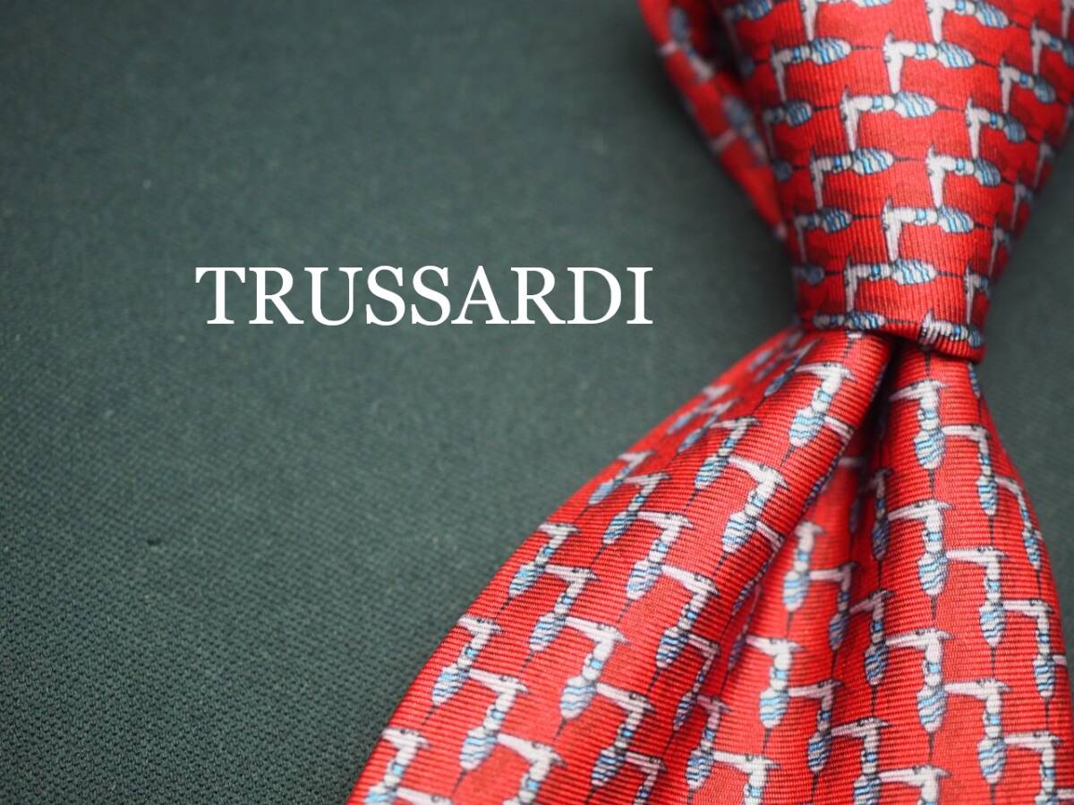 - 美品【TRUSSARDI トラサルディ】 G1281 赤系 SILK ブランド ネクタイ 古着 良品 転売 仕入