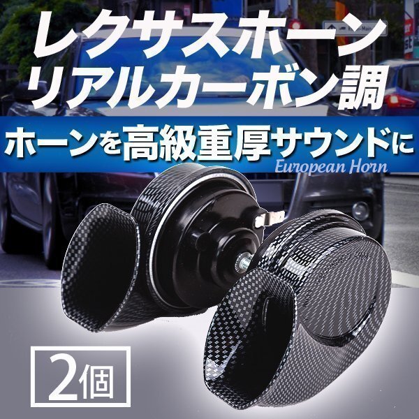 - 汎用 レクサスホーン リアルカーボン調 12V 純正 サウンド 2 個 ステー付属 ヨーロピアン ホーン 高音 低音 車 クラクション カスタム