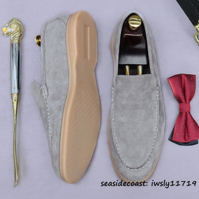 - 最高級★ビジネスシューズ 本革 メンズ ドライビングシューズ 職人手作り ローファー スリッポン スエード革 紳士靴 革靴 グレー 26.0cm