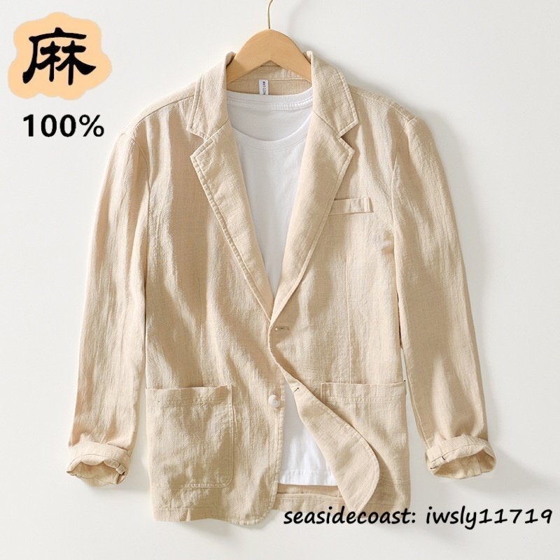 - 超希少*テーラードジャケット メンズ 春夏秋 リネンジャケット 麻100% 無地 清涼感 通気性 ブレザー 麻スーツ 紳士服 鮮やか ベージュ 3XL