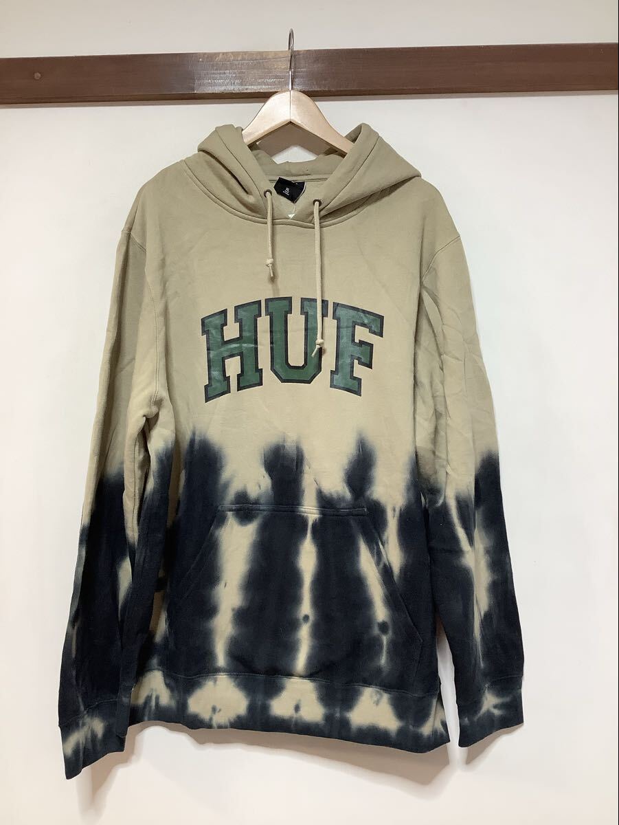 > な1705 タグ付き HAF ハフ Hoodie フーディー スウェットパーカー XL ダークベージュ タイダイ染 裏起毛 ストレート