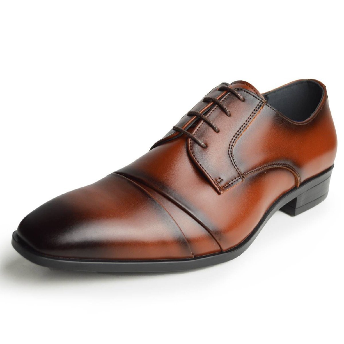 > 新品■25cm ビジネスシューズ メンズ クッションインソール 革靴 外羽根 レースアップ 斜めチップ 幅広 EEE 3E 制菌 再生皮革
