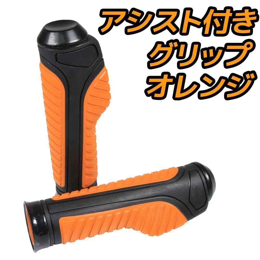 > スロットルアシスト付 ラバーグリップ 22.2mm オレンジ 汎用 ハンドル 左右セット バイク オートバイ カブ TW225 SR400 セロー VOX ZZ