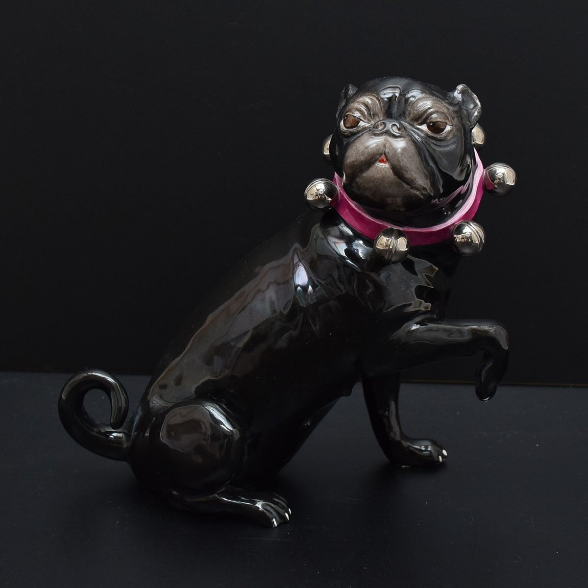 - ◎569224 Kuhn Keramik クーン・ケラミック 珍品 Audrey pug girl ハンドクラフト パグ オブジェ インテリア 置物 ブラック ドイツ