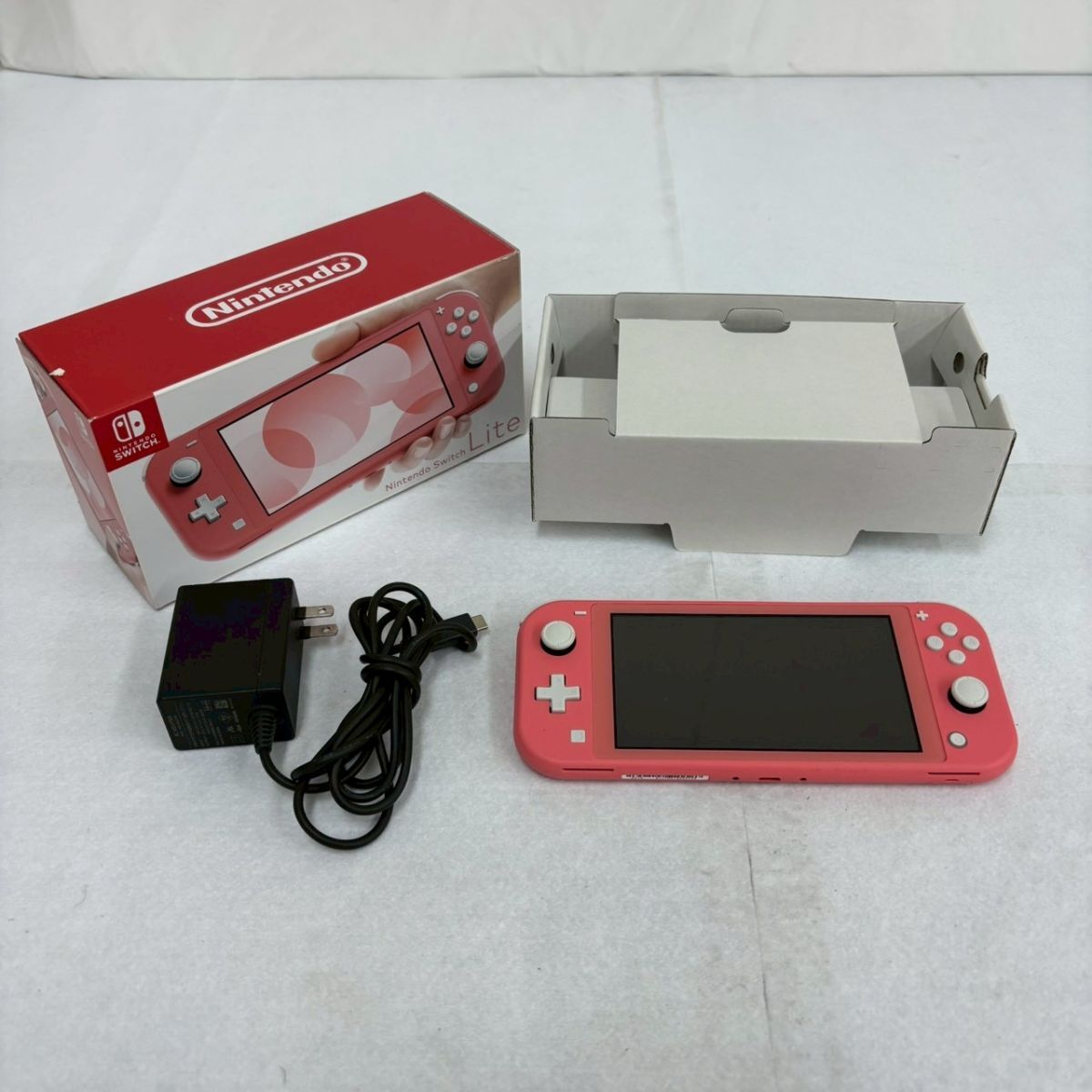 - J438-O66-926 Nintendo Switch Lite ニンテンドー スイッチ ライト 本体 HDH-001 コーラル/ACアダプター/箱付きセット 通電OK OA