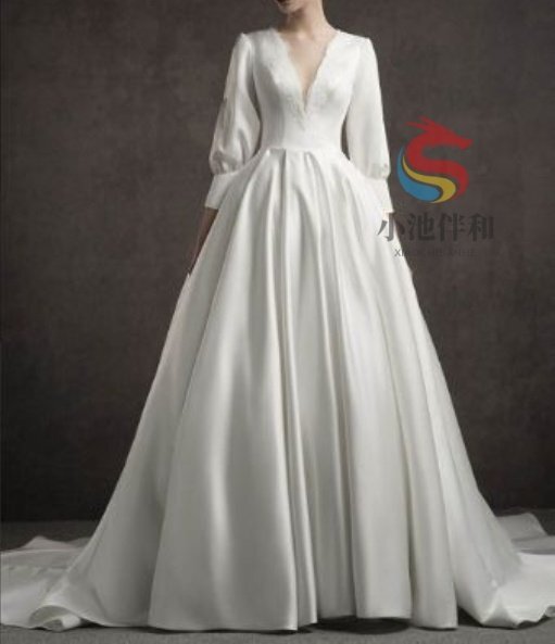 - ウエディングドレス aライン 白 袖あり Vネック レース 花嫁 結婚式 二次会 パーティードレス ブライダル ロングドレス イブニングドレス前