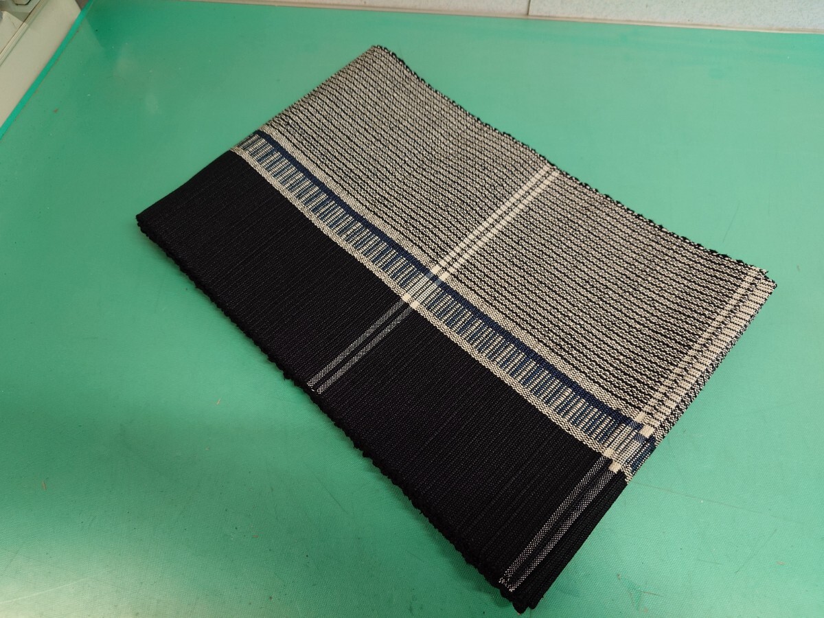 - ● 243 スタイリッシュ モノトーン系 黒 白 くすみブルー 素敵な 変わり帯 名古屋帯 全通 帯 存在感抜群 美品 ③
