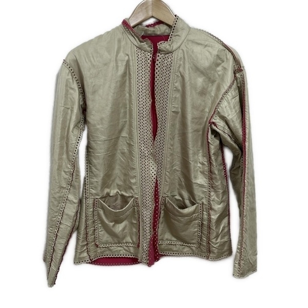 > イッセイミヤケ ISSEYMIYAKE ブルゾン サイズ2 M - ベージュ×ピンク レディース 長袖/春/秋 ジャケット
