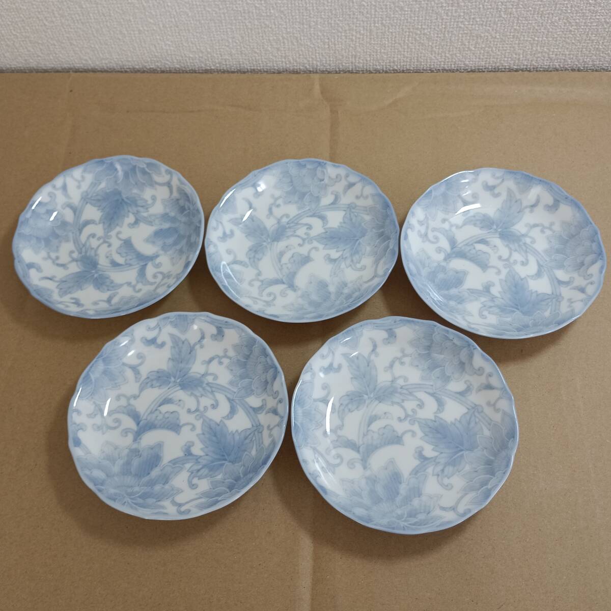 - 【大黒正宗】 特選陶器 小皿 取り皿 和柄 花柄 唐草 5枚 新品未使用