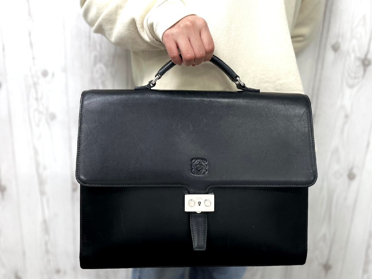 - 美品 LOEWE ロエベ ヴィンテージ アナグラム ビジネスバッグ ハンドバッグ バッグ レザー 黒 A4収納可 メンズ 91670