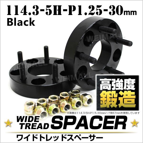 > Durax正規品 ワイドトレッドスペーサー 30mm 114.3-5H-P1.25 ナット付 黒1D 5穴 日産 スズキ スバル 2枚セット