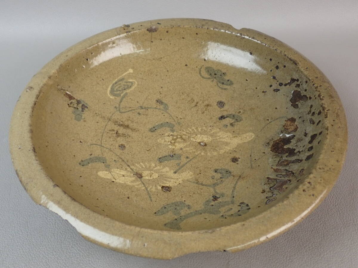 - 【骨董・茶道具】★益子焼?瀬戸焼?★★花文石皿 gq073tb 和食器 古民芸