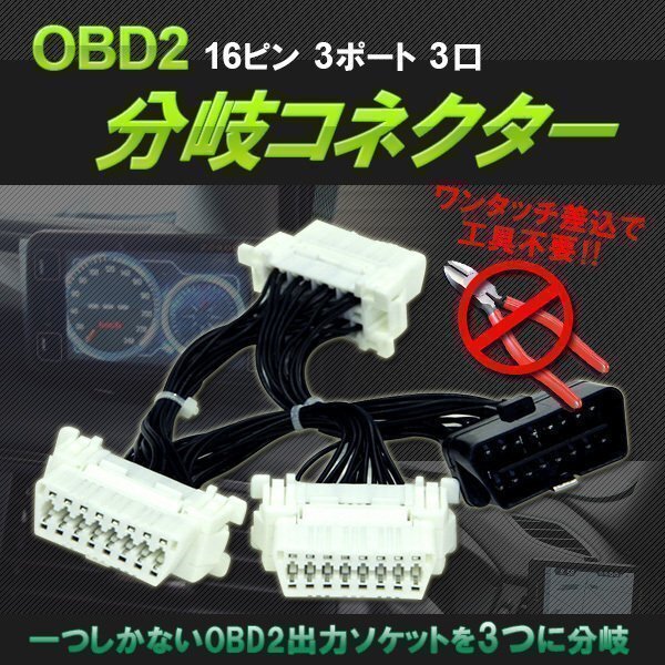 > ★OBD2用 3分岐ケーブル16PIN 分岐ハーネス 3ポート OBD メーター 汎用 カプラー 車 ストレートオスカプラー L型メスカプラー