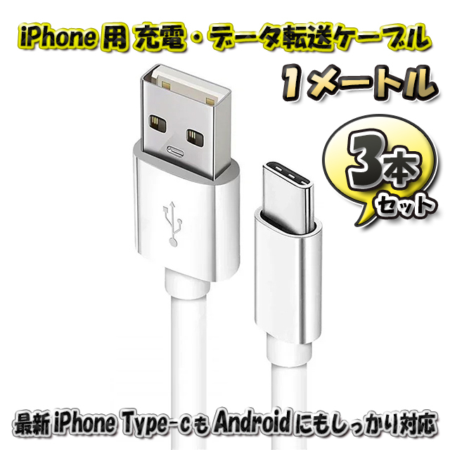 - 最新 iPhone Type-C 対応 Android 充電 データ転送 ケーブル 1m x3本セット 【カラー:ホワイト】全国送料無料