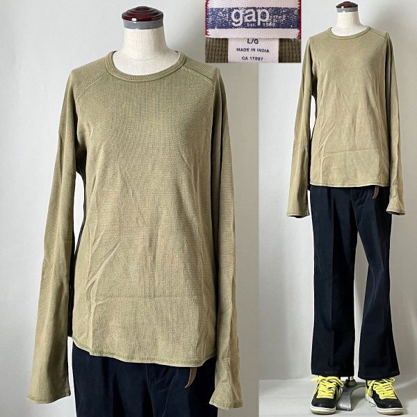 > 【ビンテージ オールド ギャップ gap 小文字タグ】インド製 90s GAP コットン100% ロングスリーブ 長袖 サーマル ラグラン ロンT Tシャツ L