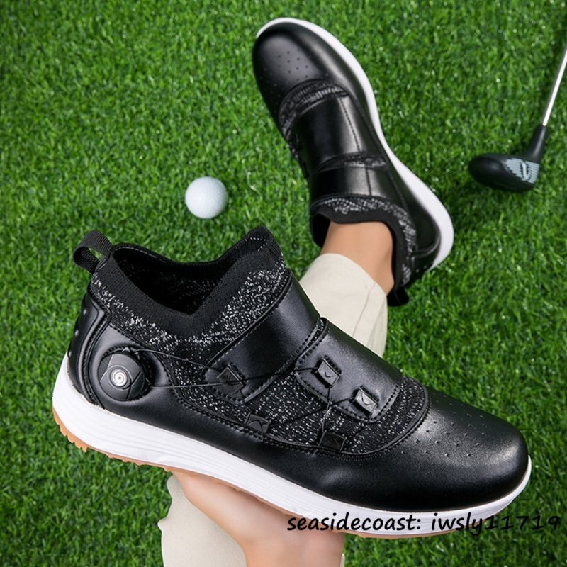 - 高級品 ゴルフシューズ 強いグリップ 新品ダイヤル式 運動靴 フィット感 軽量スポーツシューズ 弾力性 通気性 防滑 ブラック 24.5cm