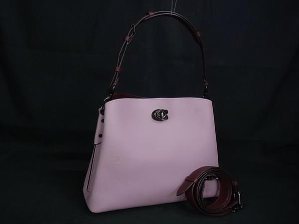 > 1円 ■極美品■ COACH コーチ C2590 ウィロウ レザー ワンハンドル 2WAY ハンドバッグ ショルダーバッグ レディース ピンク系 FU4973