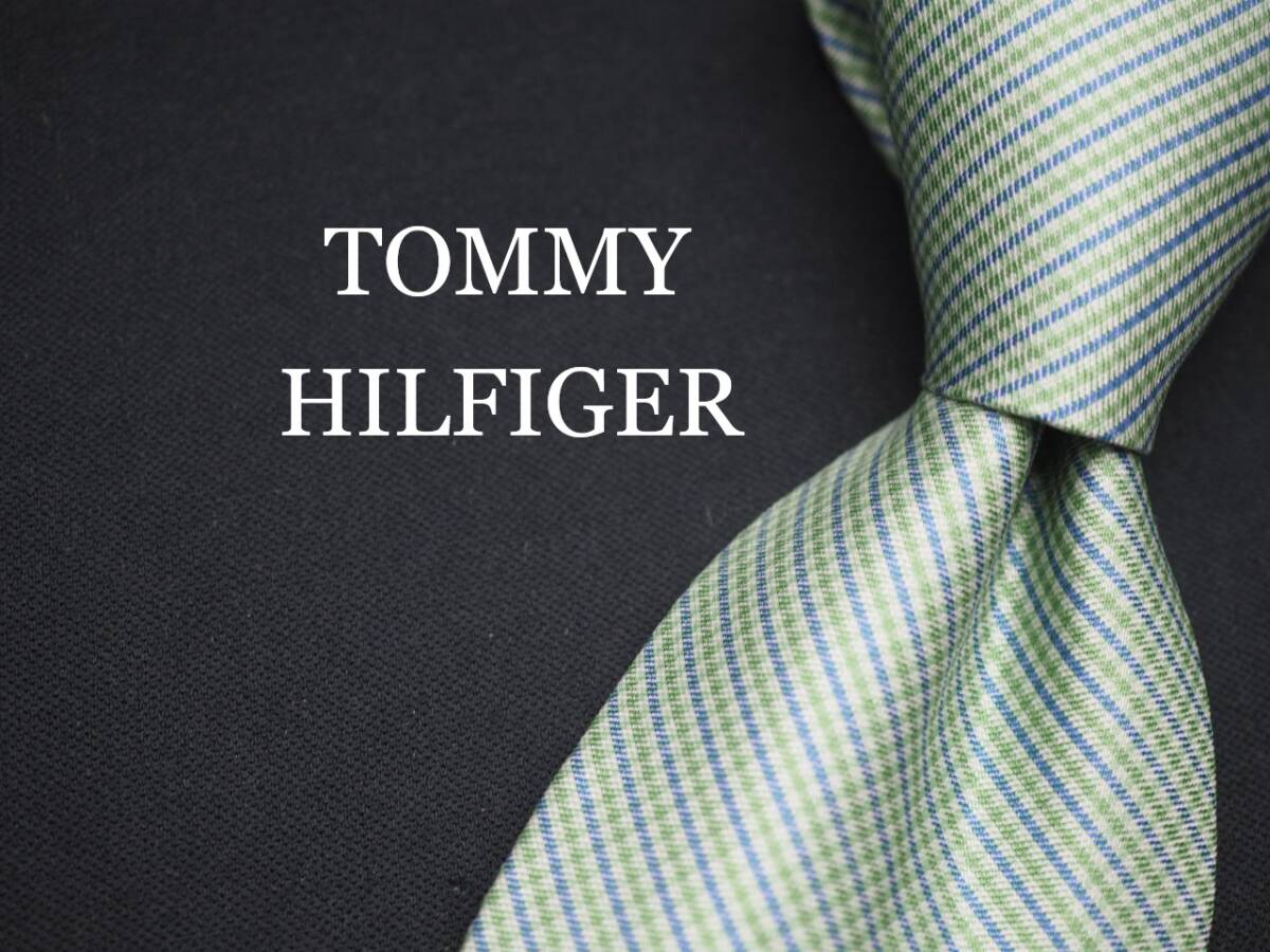 > 美品【TOMMY HILFIGER トミーヒルフィガー】 G1574 黄緑系 SILK ブランド ネクタイ 古着 良品 転売 仕入