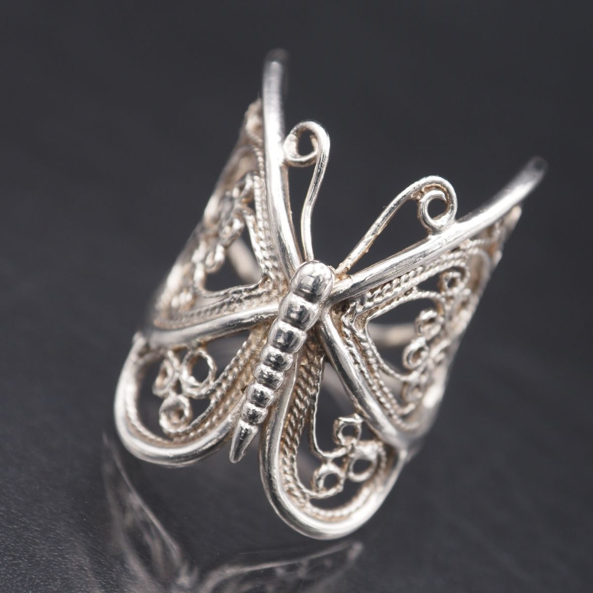 - H717 CRAFT クラフト SILVER刻印 リング フィリグリー 銀線細工 蝶 バタフライ デザイン シルバー 指輪 12号
