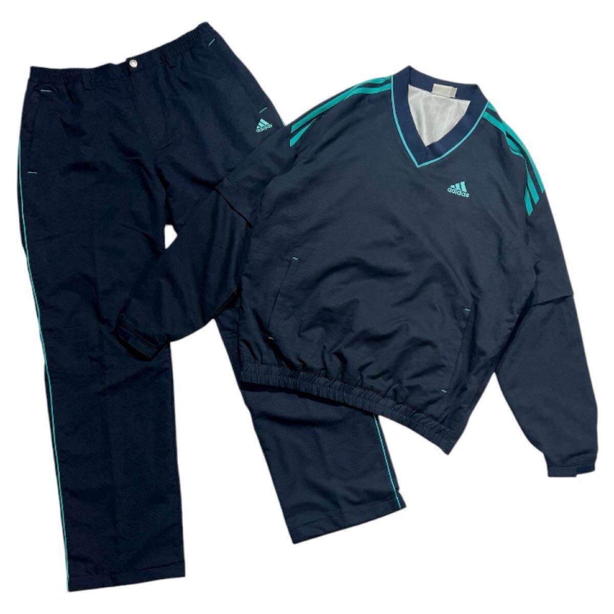 > ■ adidas GOLF アディダス ゴルフ ■ パフォーマンス ロゴ 刺繍 蓄熱 保温 2WAY ゴルフ ジャケット パンツ 上下 セットアップ ネイビー