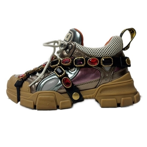 > グッチ GUCCI スニーカー - レザー パープル×白×マルチ レディース インソール取外し可/ビジュー 靴