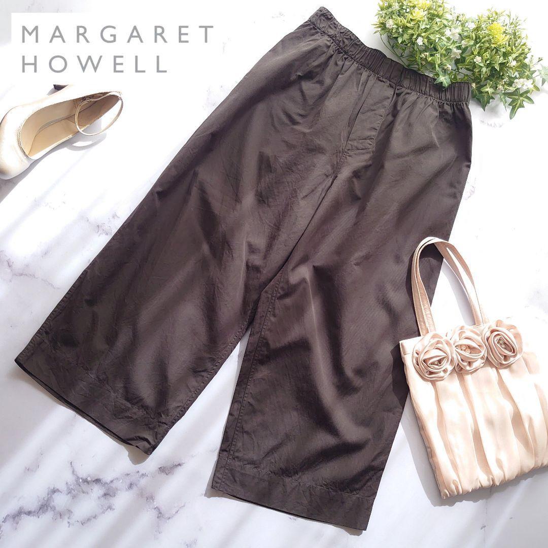 - 24SS MARGARET HOWELL マーガレットハウエル コットンリネンポプリン クロップド ワイド イージーパンツ ウエストゴム ブラウン 茶