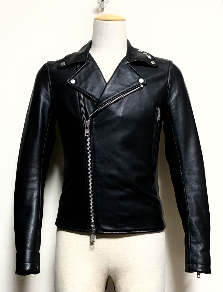 - 美品:RICORZO(リコルゾ).ラムレザー ダブル ライダース S(黒/Wジップ開/上質.羊革/肩42幅47丈59/V系/vanquish tornado mart fuga type)