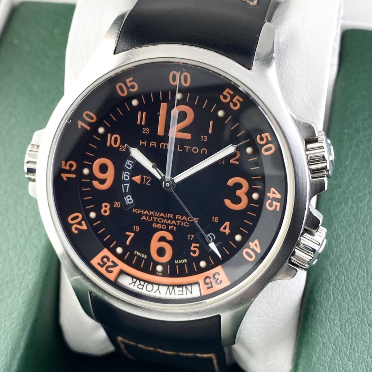- 【1円〜】HAMILTON ハミルトン 腕時計 メンズ AT 自動巻 KHAKI カーキ H776650 エアレース ブラック文字盤 オレンジ デイト 可動品