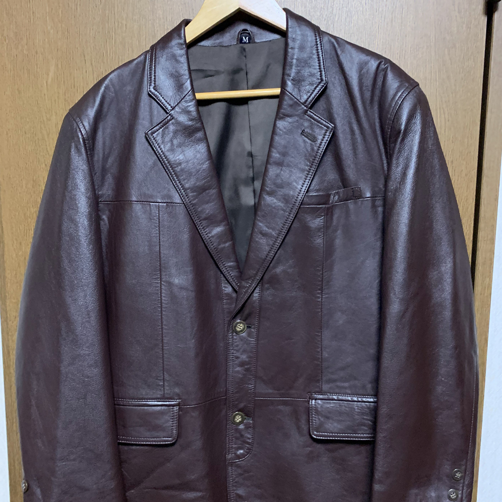 - M【PIAGET|レザージャケット】ピアジェ ブラウン系 ラムレザー ジャケット シープスキン 革ジャン 本革 L位