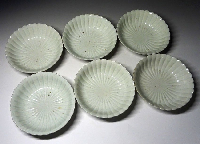- 緑屋c■ 中国古玩 徳化窯 白磁 輪花皿 6客 白高麗 唐物 時代物 i9/10-6665/17-4#80