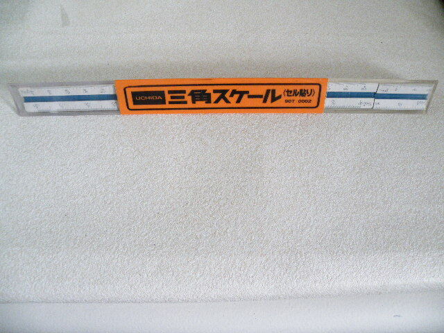 > ***☆★現状渡しコレクション放出 全長375mmUCHIDA(セル貼り)三角スケール 副尺付き クリアケース付き 907-0002 超美品