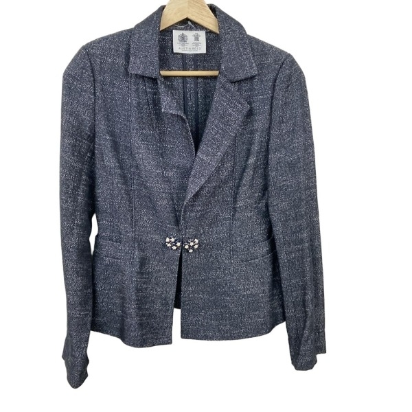 > オースチンリード Austin Reed サイズ38 L - ネイビー レディース 長袖/ラインストーン/フラワー(花)/肩パッド/秋/冬 美品 ジャケット