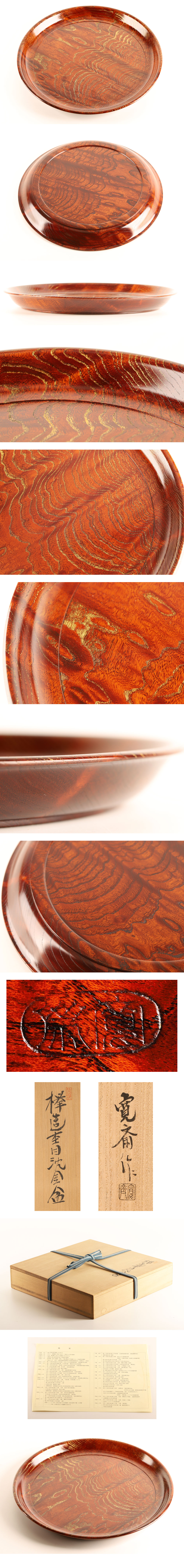【流】山根寛斎 欅造 杢目沈金盆 共箱 HD141
