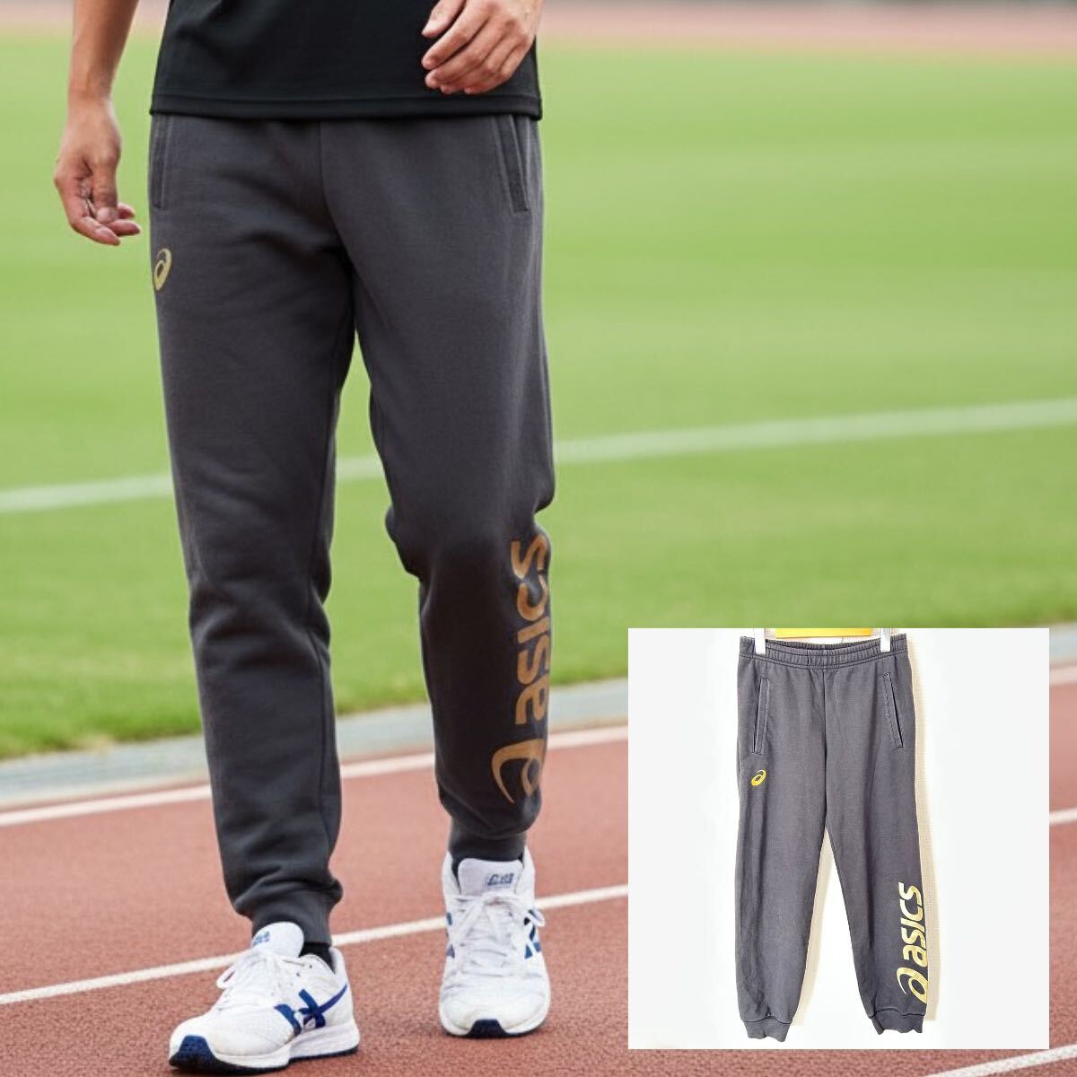 - 程よく厚手◎トレーニングに!【asics】アシックス スウェットパンツ ロゴプリント 運動 スポーツ ジム ブラック 黒 メンズM/Y37842YY