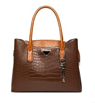 - 高品質 レザー調 クロコダイル柄 ハンドバッグ ショルダーバッグ ブラウン レディース 女性 【n409】