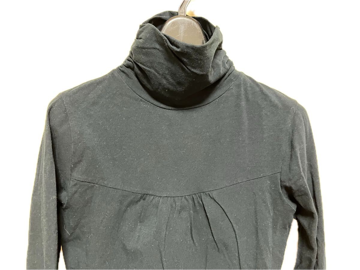 > RULe 未使用新品カットソー長袖 格安 高級シャーリング可愛いハイネックTシャツ黒ブラック インナー 高機能 保温素材ギャザー トップス