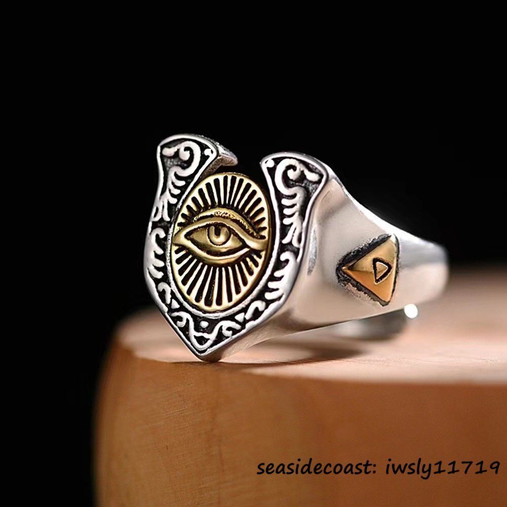 - 1円~◆新品 シルバー925 リング ドクロ 知恵の目 幸福 祈り 幸せ ファッション 指輪 アクセサリー 男女兼用レディース サイズ調整可