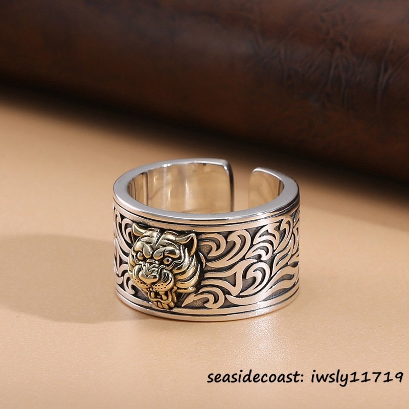 > 1円スタート◆シルバー925 リング 職人手作り ドクロ 虎 動物 力 ファッション 指輪 アクセサリー 男女兼用レディース サイズ調整可
