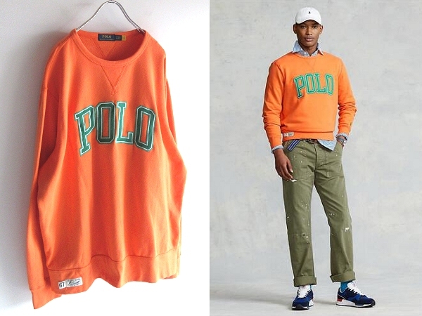 > 現行/QRコードタグ POLO RALPH LAUREN ラルフローレン THE RL FLEECE LOGO SWEATSHIRT ワッペンロゴ ポロポニー刺繍 スウェット L オレンジ