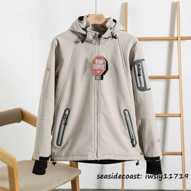 > 高機能素材★マウンテンパーカ メンズ フード付き 脱着可 裏起毛 ボアジャケット フリース 防風 防寒 防水 男女兼用 アウター ベージュ M