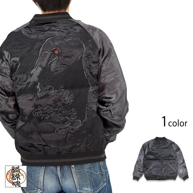 - 漆 コウモリ闇のリバーシブルスカジャン◆絡繰魂 ブラック Mサイズ 254015 和柄 和風 刺繍 スーベニアジャケット 蝙蝠 からくり