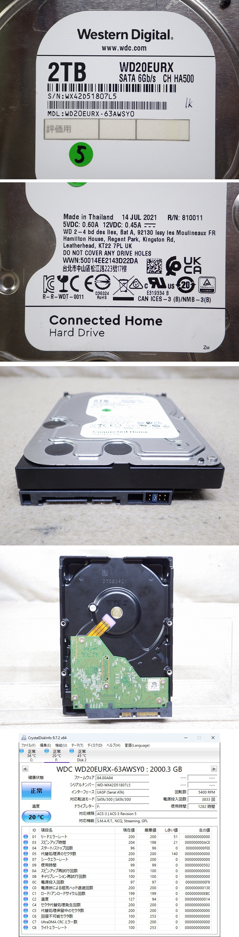 - Kネま2157 WD 3.5インチ 内蔵HDD 2TB WD20EURX-63AWSY0 パソコン周辺機器 PCパーツ ハードディスク