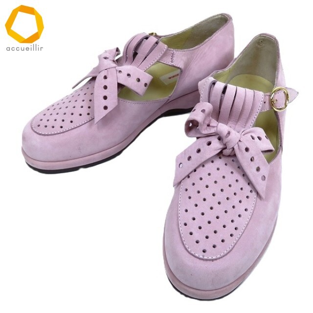 > #wus ワンダフルワールド WONDERFUL WORLD カネコイサオ モカシン S ピンク パンチング リボン スエード 希少 レディース [970349] k01