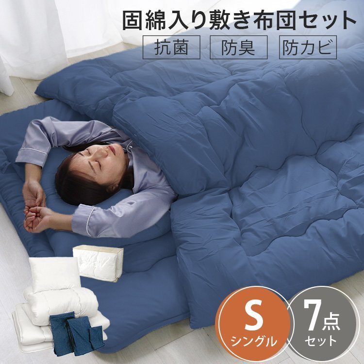 > 【7点セット/シングル/ネイビー】布団セット 洗える 敷き布団 掛け布団 枕 抗菌 防臭 防カビ ほこり 寝具 新生活