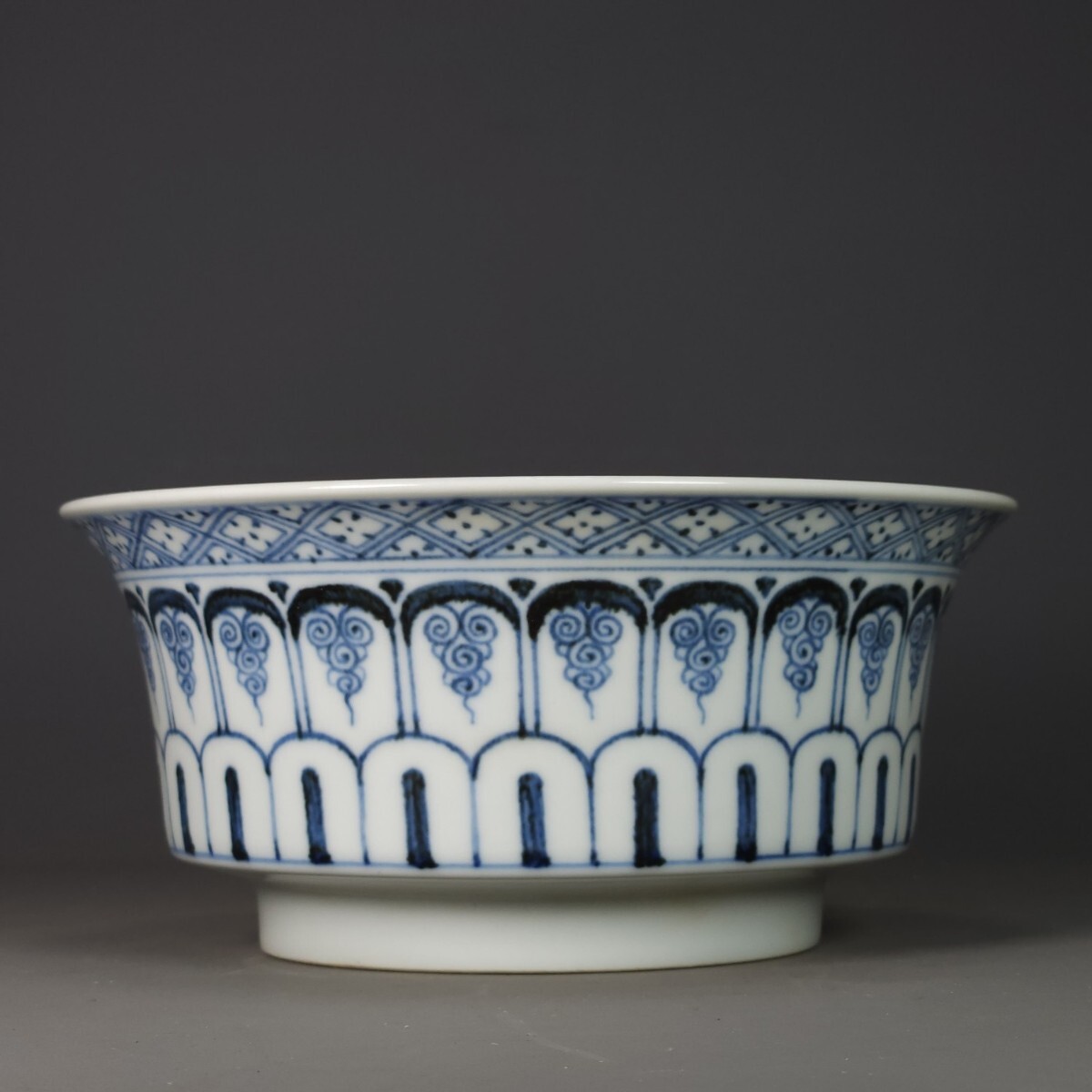 - 中国古美術 元時代 青花茶碗 陶磁器 骨董 古玩 時代物 中国美術 古美術 骨董品 唐物 当時物 口径17cm 高さ8cm wx6
