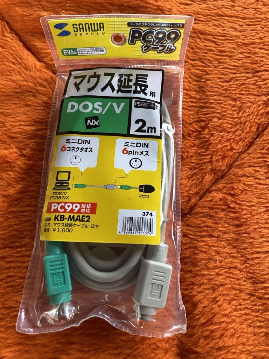 - 【送料無料】PS/2マウス(ミニDIN6pin)のケーブルを延長するケーブル。2m。PC99カラー規格対応。 サンワサプライ